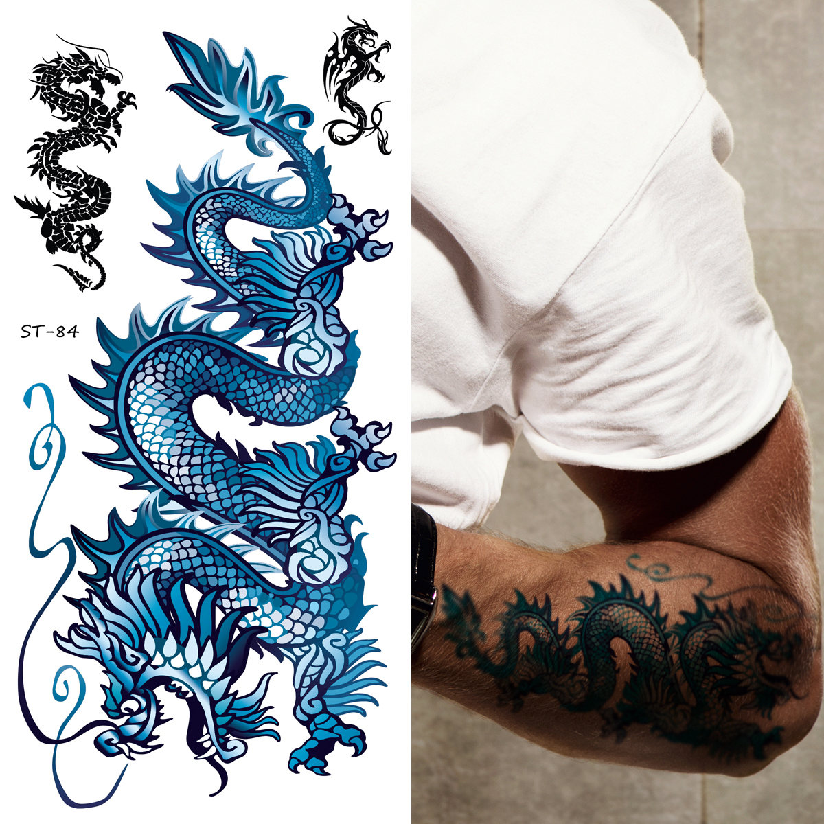 Nu Taty Blue Chinese Dragon Temporary Tattoo Body Art Arm Flash Tattoo Stickers 17 10cm Waterproof Fake Henna Painless Tattoo Aliexpress Mobile
